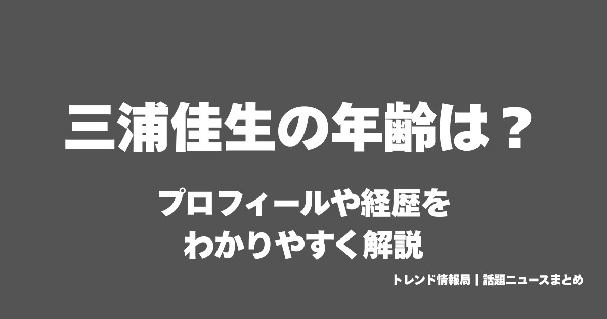 そんな三浦佳生ですが、「年齢は何歳?」「プロフィールは?」と気になる方も多いようです。