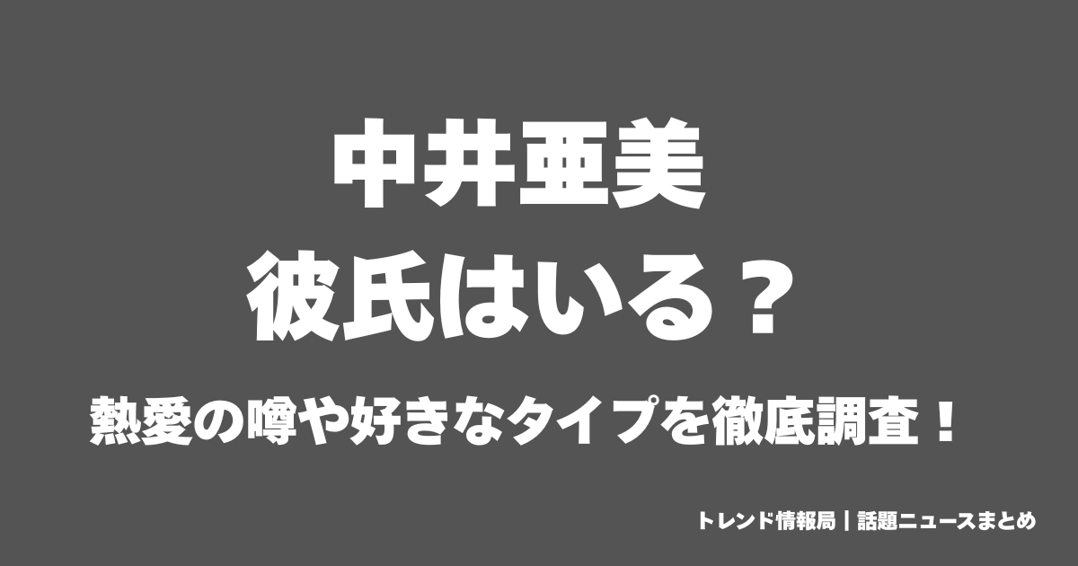 この記事では、中井亜美選手の現在の彼氏の有無やこれまでの噂、好きなタイプについて詳しく解説していきます。